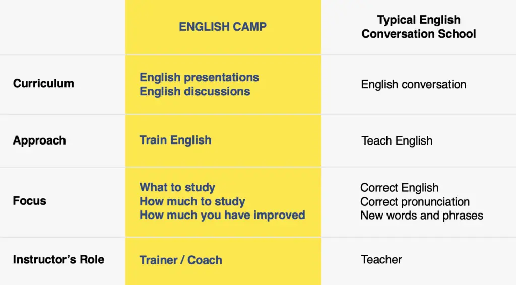 At ENGLISH CAMP, we believe in focusing on one thing first and doing it exceptionally well.